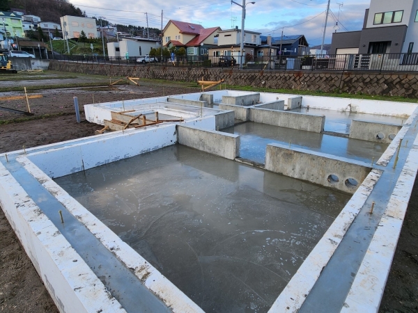 建方が終わり、壁とサッシが入り2週間ほどで家の形になります。
