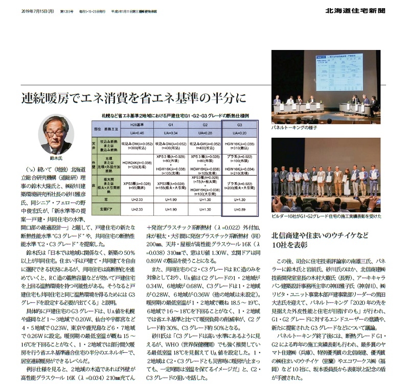 北海道住宅新聞:HEAT20で施工実績優秀賞を受賞