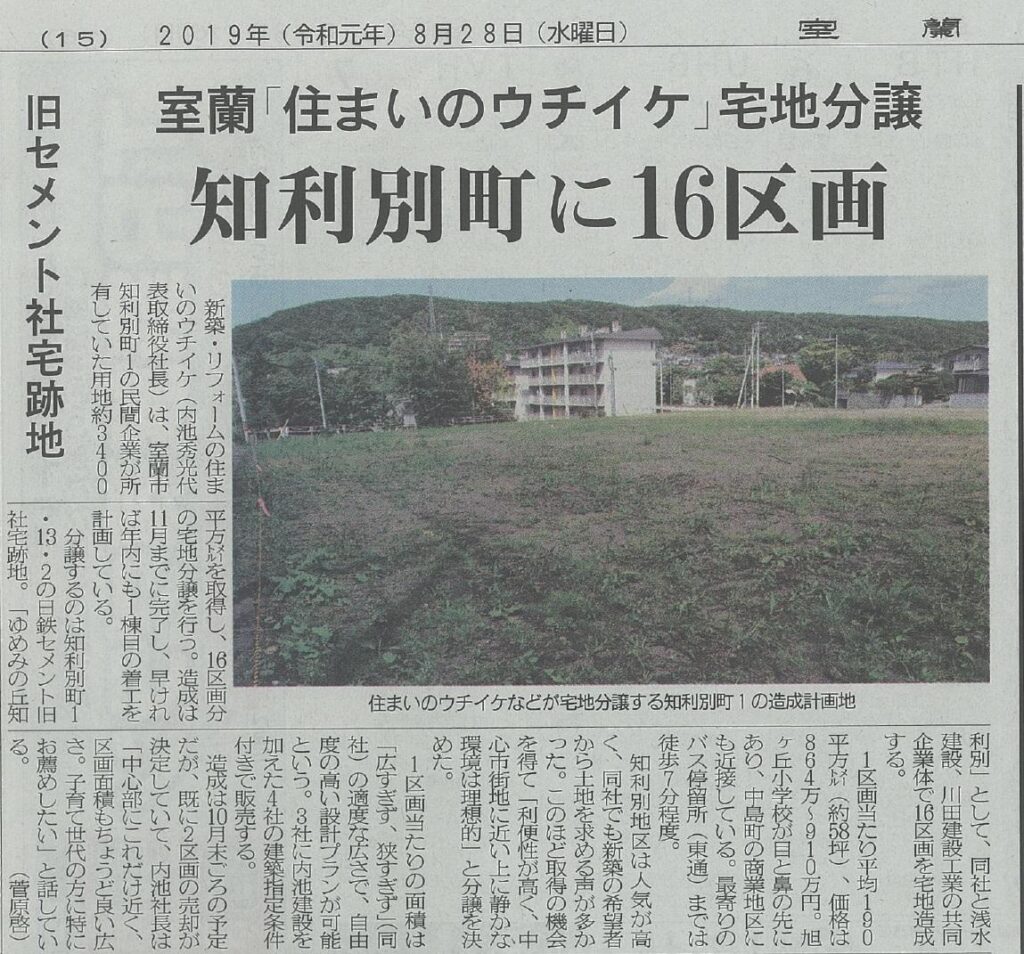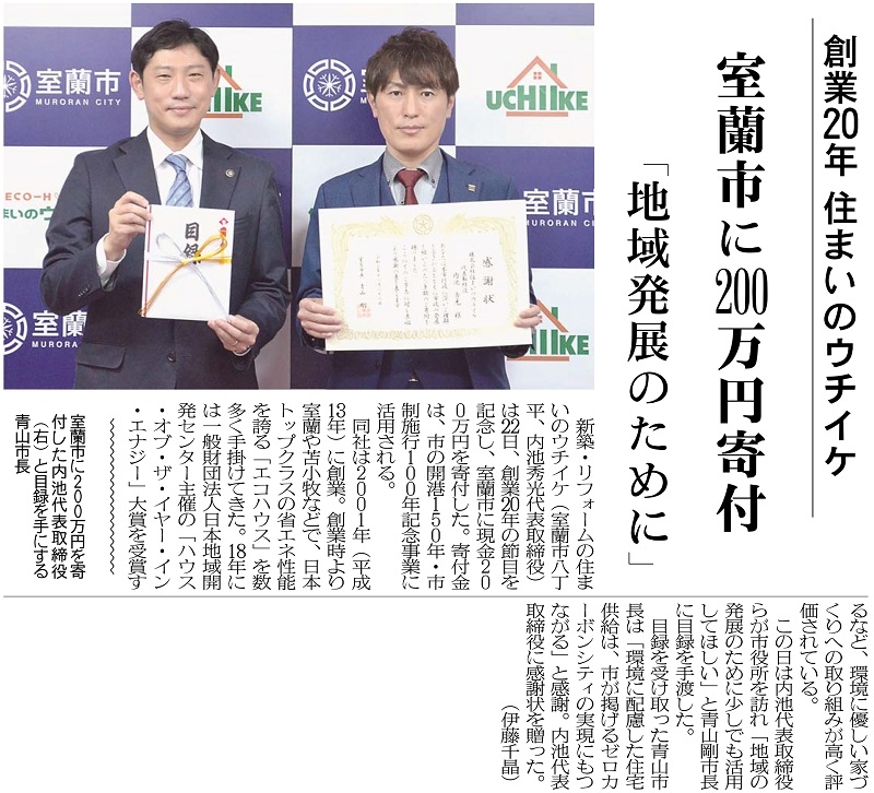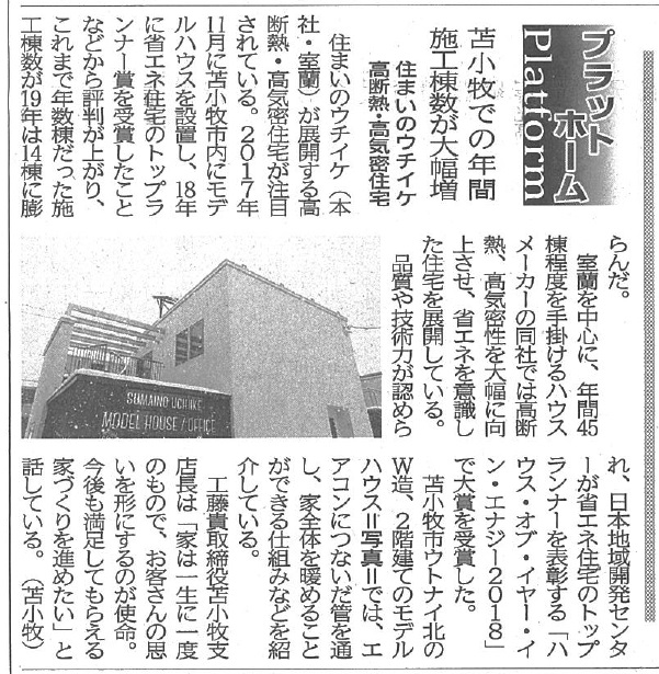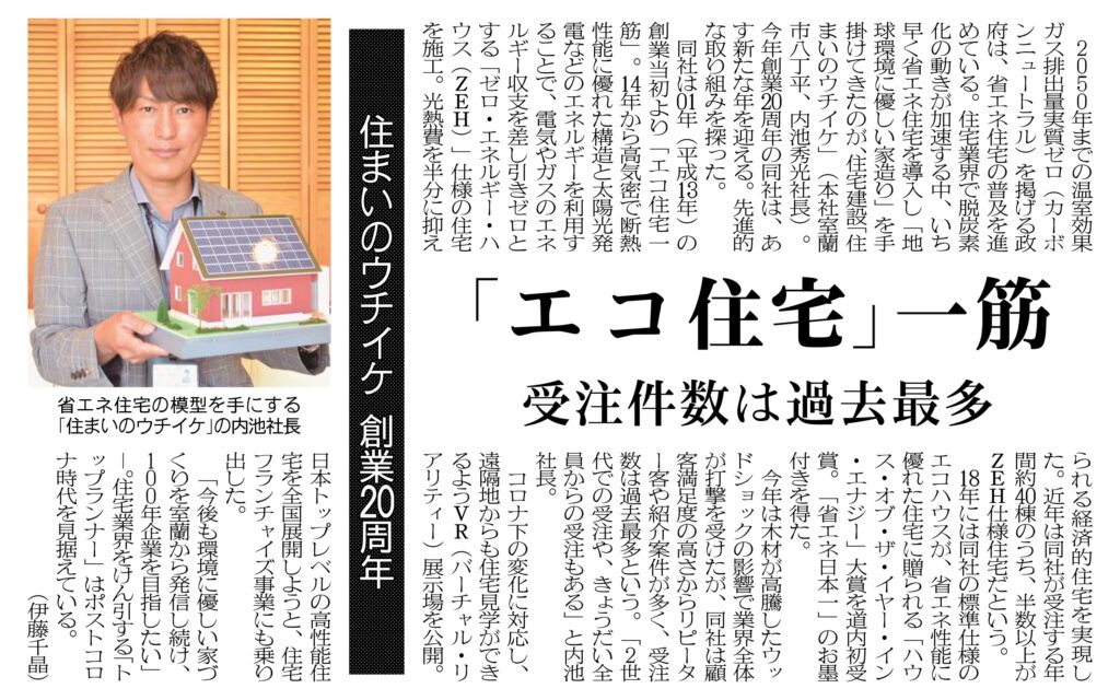 室蘭民報:「エコ住宅一筋」住まいのウチイケ創業20周年