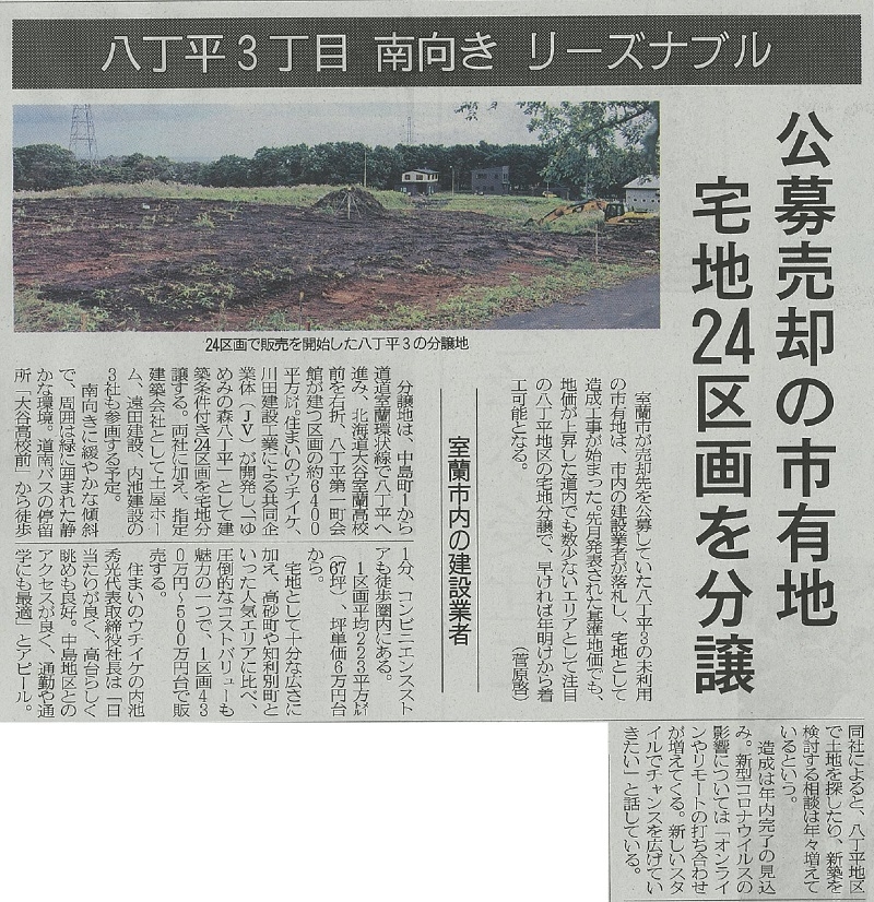 室蘭民報:八丁平3丁目宅地24区画の分譲を開始
