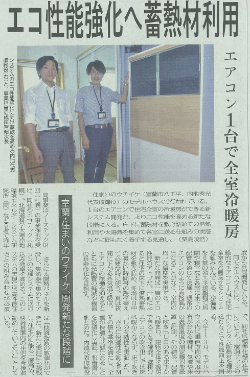 室蘭民報:住宅全室冷暖房システムをさらにエコ化へ実証事業に着手