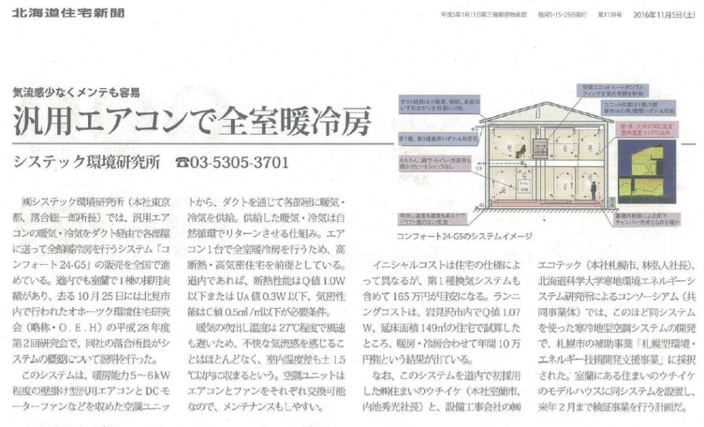 北海道住宅新聞:エアコン1台で全室暖冷房