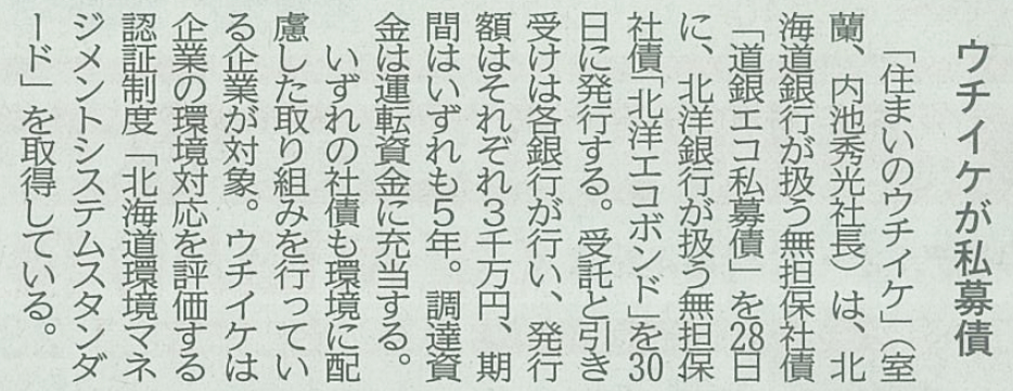北海道新聞:「道銀エコ私募債」と「北洋エコボンド」発行