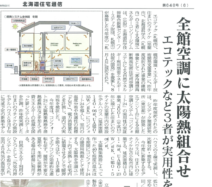北海道住宅通信:住宅全室冷暖房システムに太陽熱を組合せ