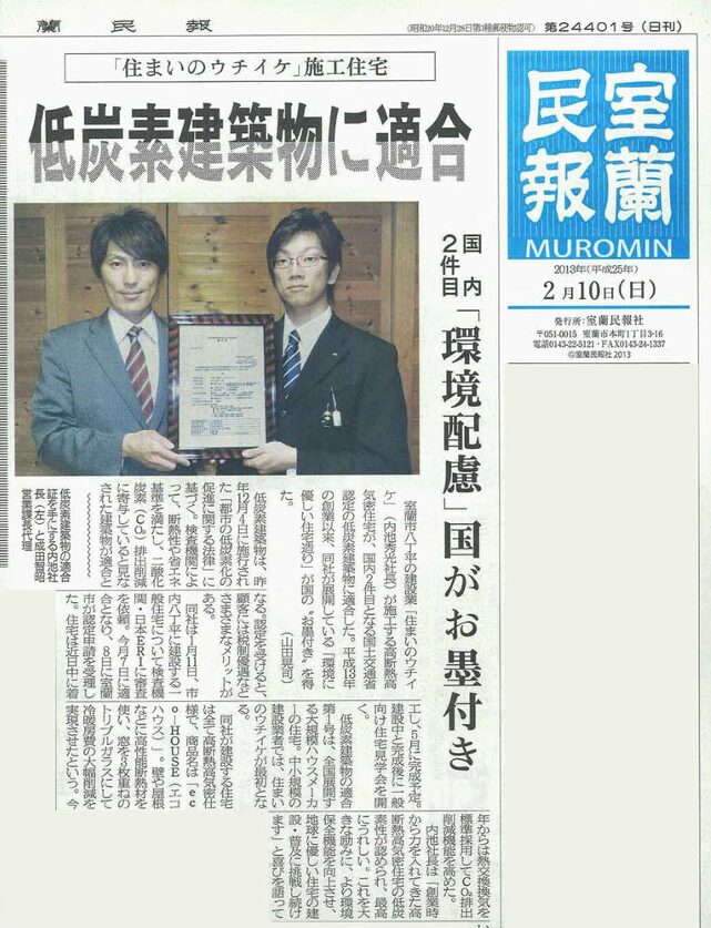 すべてのお知らせ お知らせ イベント情報 メディア掲載 不動産情報 カテゴリ すべてのお知らせ お知らせ イベント情報 メディア掲載 不動産情報 メディア掲載 室蘭民報:ハウスオブザイヤーインエナジー2015 “四冠” メディア掲載2016.03.09 室蘭民報:経済産業省ゼロエネハウス認定 メディア掲載2014.10.08 北海道住宅新聞:燃費計算が出来る営業マンを育成 メディア掲載2014.07.25 室蘭民報:道グリーン・ビズ認定 メディア掲載2014.02.25 苫小牧民報:「低炭素建築物」完成 メディア掲載2014.02.07 室蘭民報:研修センター利用を メディア掲載2013.11.01 室蘭民報:ソーラーパーク完成 メディア掲載2013.05.29 室蘭民報:低炭素建築物に適合 メディア掲載2013.02.10 室蘭民報:三重ガラスで超高断熱 メディア掲載2012.12.30 室蘭民報:室蘭市社協に義援金 メディア掲載2011.06.09 前 6 / 7« 最初«...34567» 次
