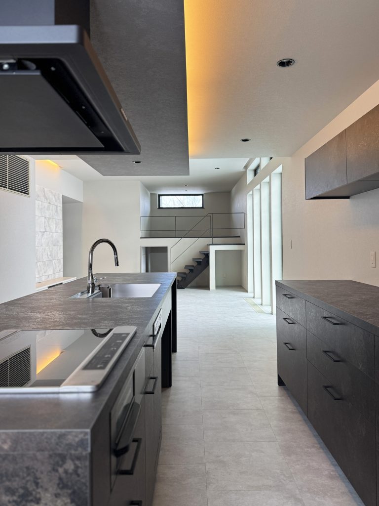 心地よさと実用性を追求したZEH住宅。車やバイクなど趣味のあるお施主様が思う存分暮らしを楽しめるインナーガレージ付きの平屋のお家が完成しました。広々としたガレージには、車だけでなくバイクや自転車・アウトドア用品なども収納可能。愛犬が心地よく過ごせるようこだわったドッグスペースも見どころです。インテリアカラーはグレートーンで統一し、モダンで落ち着いた大人な雰囲気にまとめています。